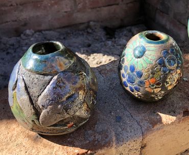 Raku at Rancho la bellota: My raku Butterflies and incised pots